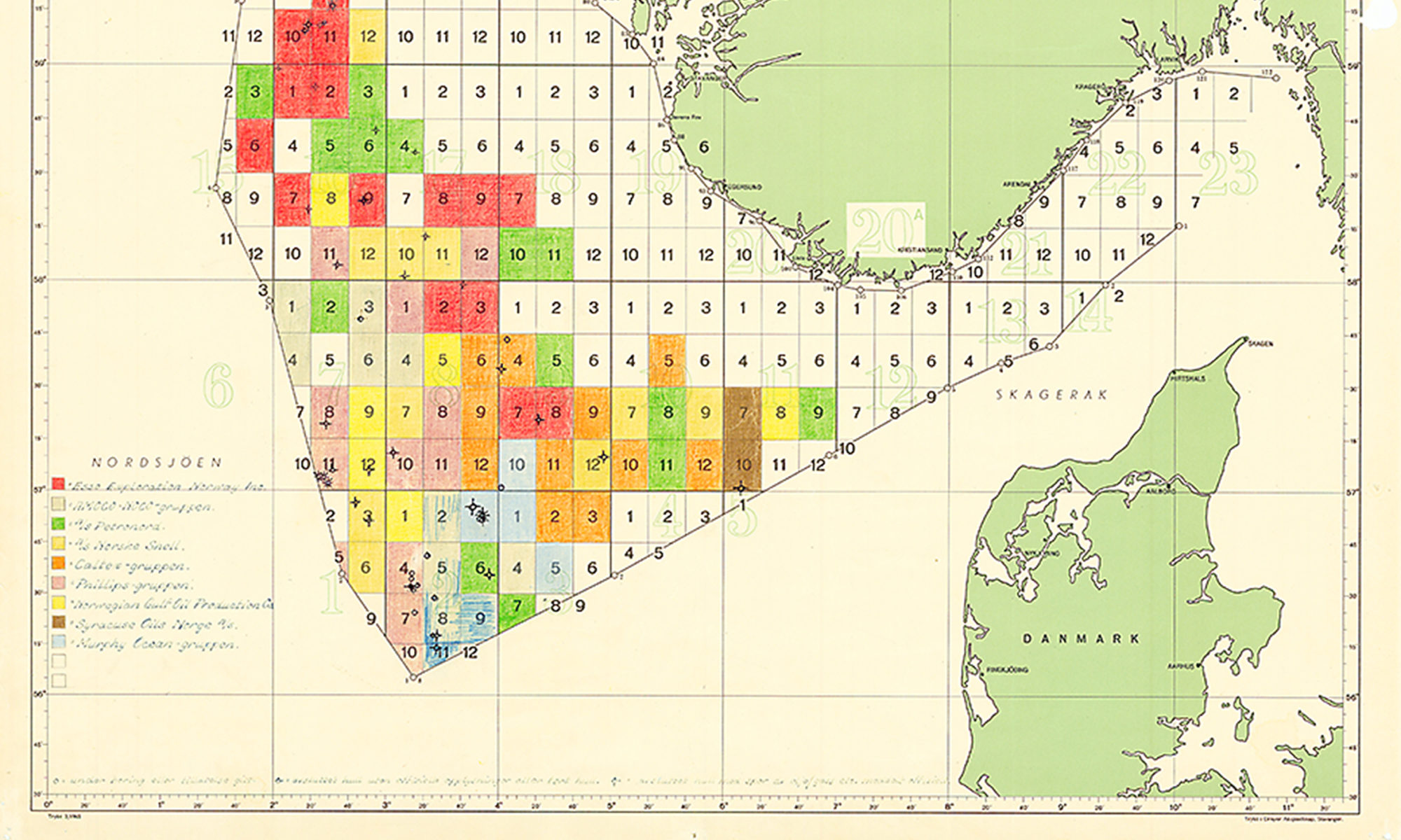 It transpired that the partners had plenty of time to find a solution. The boundary blocks were not put on offer by the Norwegian government until 1968 (see the article on The AmocoNoco group starts to drill.)