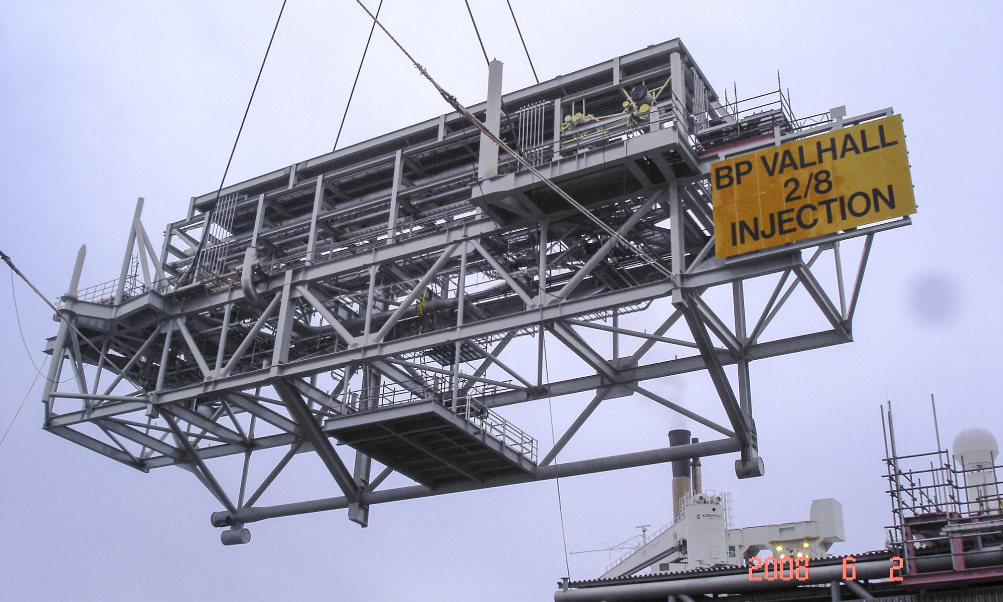 Kontrakten for design og bygging av plattformen ble gitt til Aker i konkurranse med Heerema. Stålunderstellet ble bygget ved Aker Verdal. Det var spesielle detaljer ved Akers design av bærestrukturen som fikk en del erfarne eksperter til å reagere. Det var spesielt spørsmål om innfestingssystemet (pælene) ville komme til å fungere. Akers ingeniører forsikret at en slik løsning hadde vært benyttet tidligere og med gode erfaringer. Blant ansatte ute på feltet var det en gjengs oppfatning at ingenting kommer lett på Valhall. Dette skulle vise seg å holde stikk denne gangen også. Problemer med å få festet pælene i havbunnen førte til at man måtte utsette installasjonen av dekket med et helt år. Plattformdekket ble bygget av Aker Stord. Det måtte bli liggende ved Stord verft mens eksperter fant en løsning på pæleproblemet. Denne tiden ble brukt til å gjennomgå det tekniske anlegget på nytt. Man fant alarmerende feil ved den toppmoderne boreriggen, men prosjektet fikk gjennom «hell i uhellet» tid til å foreta nødvendige justeringer. Dekket kom på plass sommeren 2003, men alle feil var ikke rettet opp og produksjonen ble ytterligere forsinket. Den første vanninjeksjonen startet opp 24. januar 2004, mer enn ett år etter opprinnelig plan. Totale kostnader for plattformen endte på 7,2 milliarder kroner, en økning på 2,8 milliarder. Bare pælingsarbeidet kom på en milliard kroner. På feltet ble det i 2003 installert et avansert overvåkningssystem (LoFS) (egen artikkel) som skulle måle og holde oversikt over den tidlige utviklingen slik at man kunne implementere forbedringer ved vanninjisering basert på erfaring.