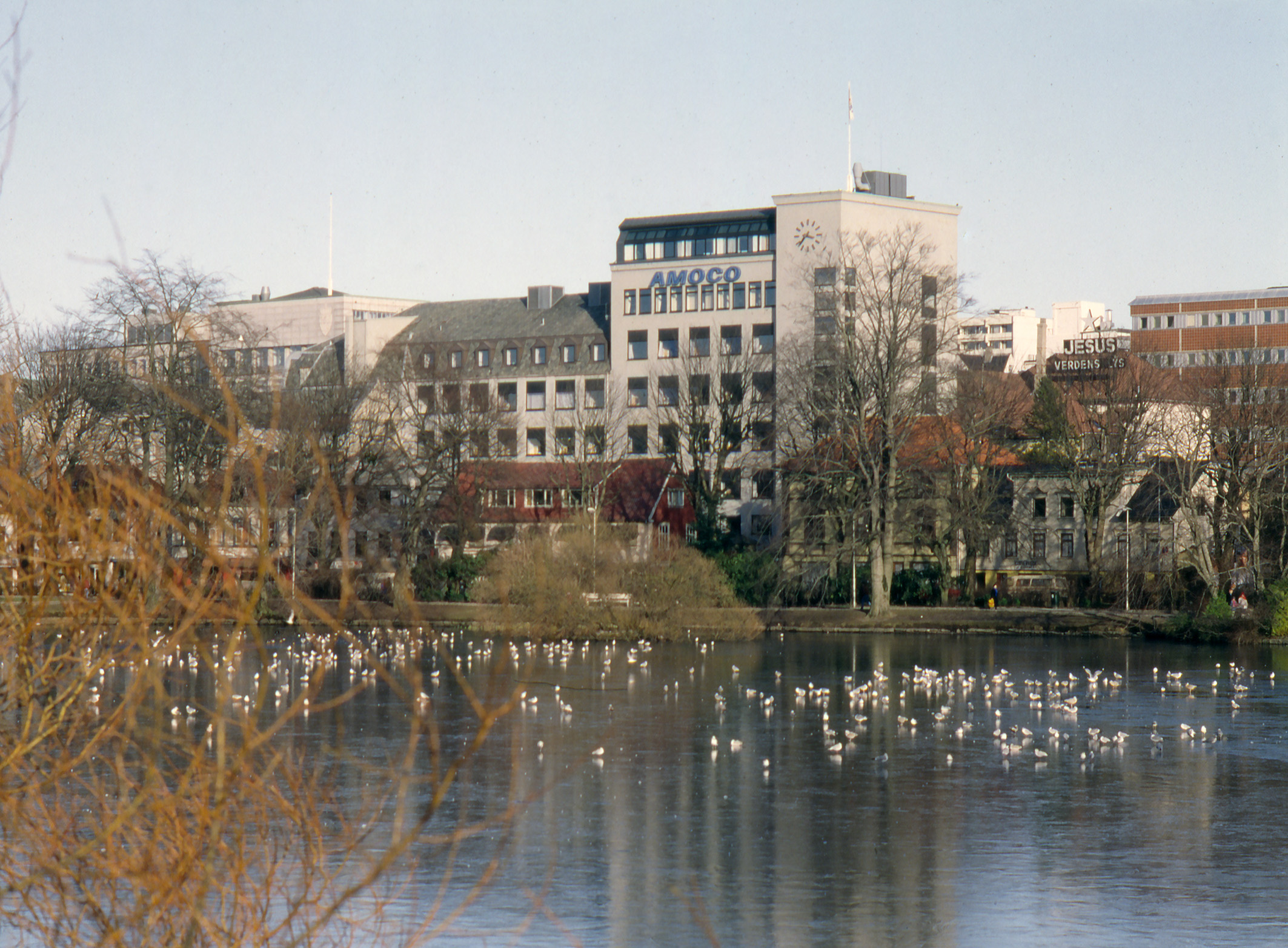 Amocos kontorbygg i Bergelandsgata, Stavanger sentrum. Bygget blir ofte kalt Dreyer-bygget da det før huset Dreyer Trykkeri. Foto: Amoco Norway Oil Company/Norsk Oljemuseum